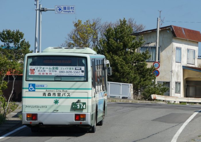 青森市営バスでは、民間のバス事業者を買収した名残で、かつては遠く蟹田や三厩、竜飛岬など市外へも路線を延ばしていましたが、時代の流れとともに路線網は縮小、今は後潟の転回場がわずかに蓬田村に入るのみとなっています。